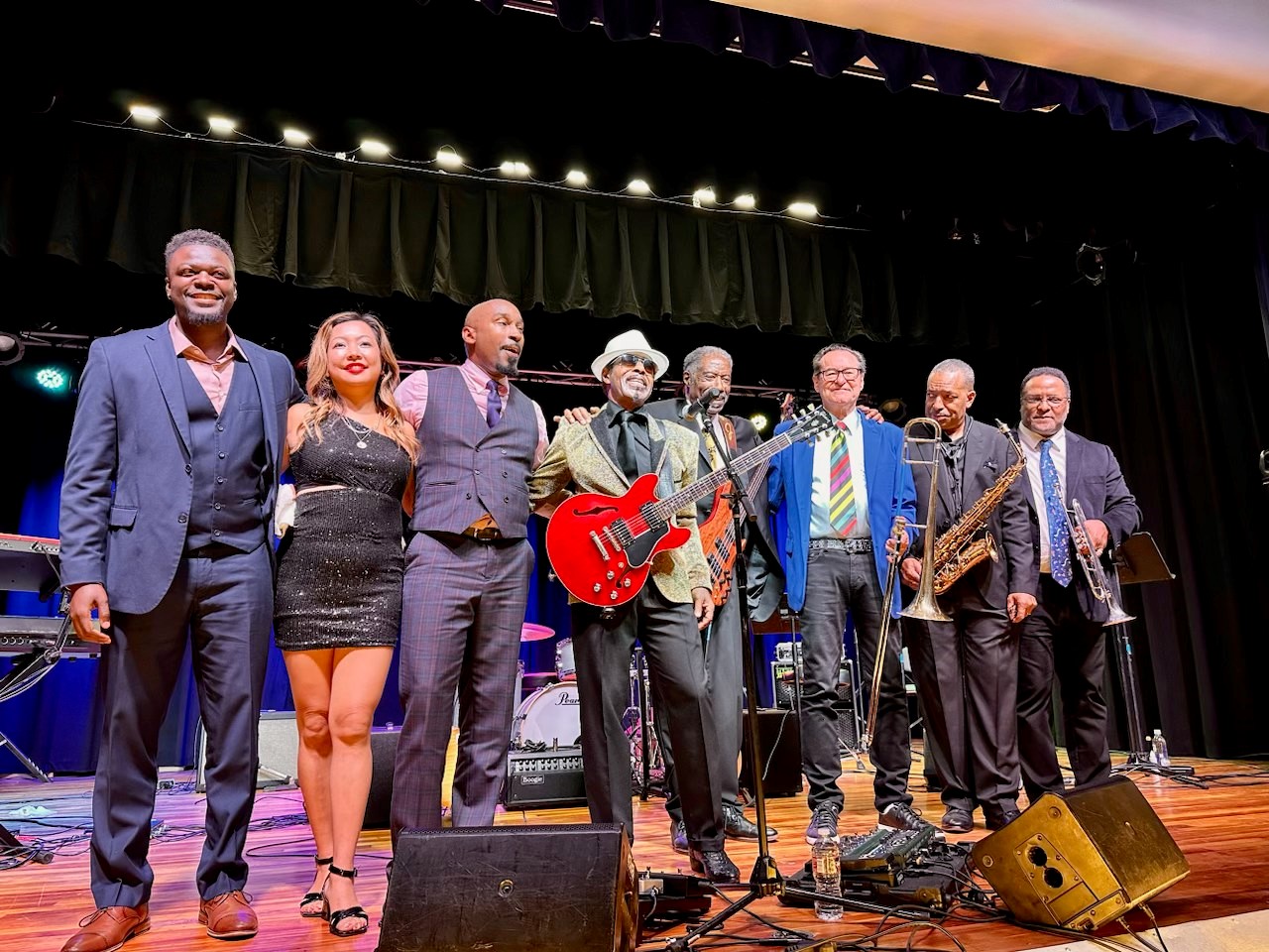 The Mississippi Brothers are an American blues band that brings together music icons. Each of its members has had a career as arranger, composer and musician with many internationally recognized artists such as The Blues Brothers, Paul McCartney, James Brown, Aretha Franklin, Diana Ross, The Temptations, Percy Sledge, Cyndi Lauper, Blood Sweat & Tears , Frank Zappa, Olivia Newton-John, Yes, Billy Preston, Sting, Ray Charles, Stevie Wonder, Jimmy Cliff, The Supremes, Jeff Beck, Jimmy Page, Phil Collins, George Benson, Al Green, Eddie Harris, Tony Bennett, Etta James, Harry Connick, Jr., Peggy Lee, Pat Metheny, BB King, Steve Vai, Chuck Berry, Eddie Palmieri, the Count Basie Orchestra, Christina Aguilera, Bono, Miley Cyrus, Little Richard, Sly Johnson, Miles Davis, Dr. John, George Porter and Charlie Wooton to name just a few. The Mississippi Brothers are Tom “Bones” Malone (trombone), Vasti Jackson (guitar), Jerry Jemmott (bass), Frank Greene (trumpet), Derrick “D’Mar” Martin (drums), Donald Harrison (saxophone) and Keiko Komaki (piano).
